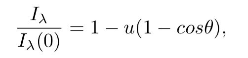 The (wavelength dependent) limb darkening is interesting to study in its own right, but has more far reaching consequences. In particular, space based observatories, such as Kepler have identified thousands of planets through the transit method, in which a planet that passes infront of a star ecclipses a (very small) fraction of the light. The depth and shape of the light curve reflect a number of factors, including the limb darkening, ratio of size (radius) of the star to planet, and the orbital parameters. The simplest form of the limb darkening can be described in terms of the specific intensity I originating from the stellar core. In the Eddington approximation, the intensity as a function of radius can be described by: