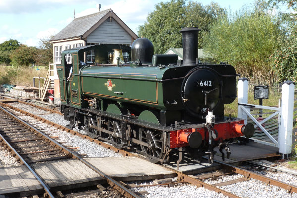 GWR 0-6-0PT 6412 at Totnes Riverside station, South Devon Railway. Date: 31st August 2019